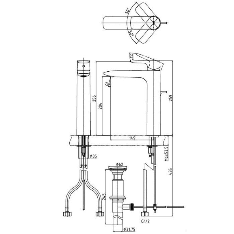 - Comes with pop-up waste